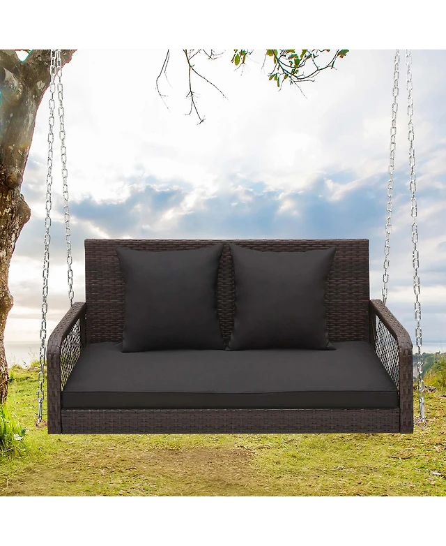 Sugift 2-Person Patio Pe Wicker Hanging Porch Swing Bench Chair Cushion 800 Pounds