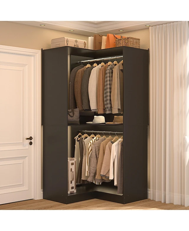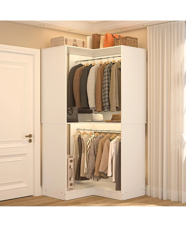 Aheaplus 40'' Large Corner Closet Organizer System with 12 Shelves, 6 Tier Walk-in 2 Hanging Rods
