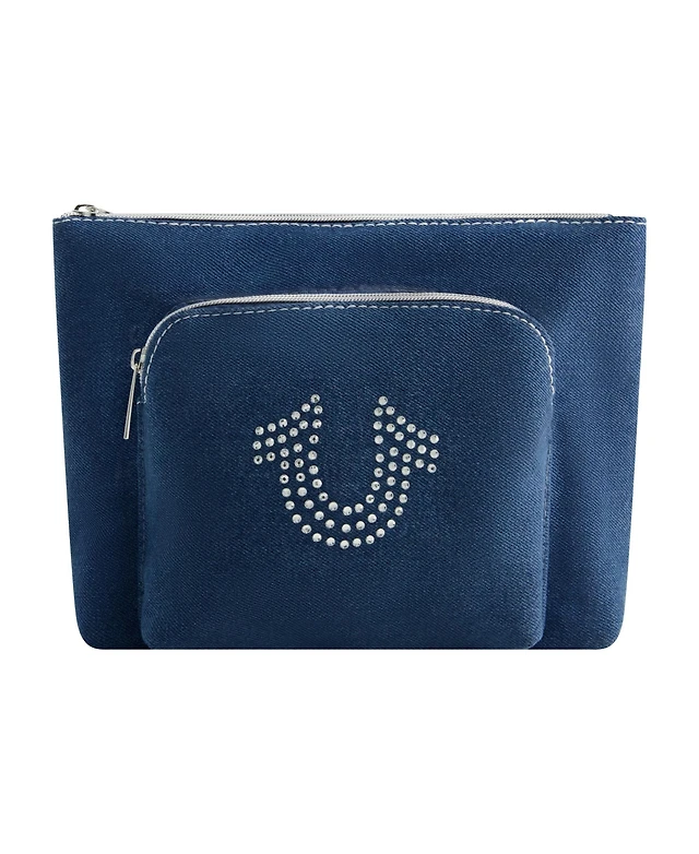 True Religion Trapazoid zip cosmetic bag with exterior zip pocket