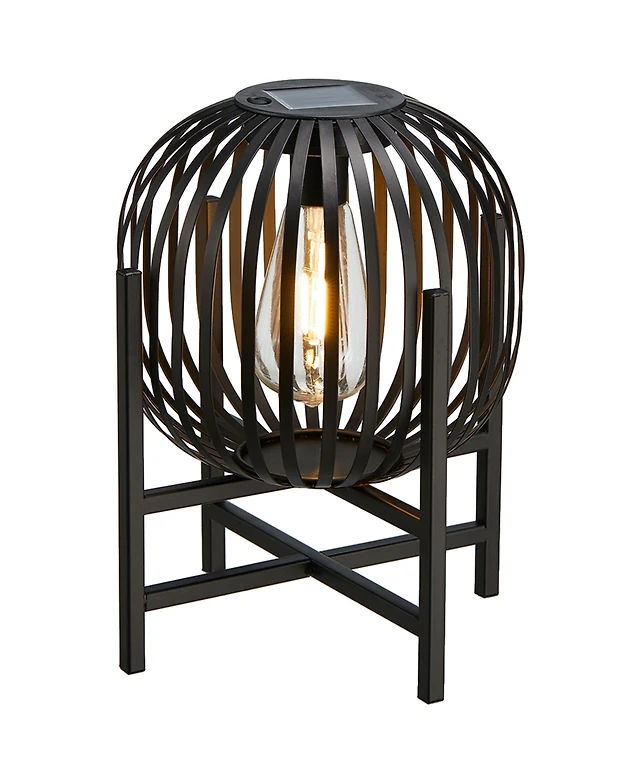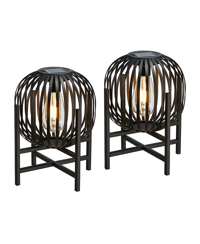 Glitzhome 11.50" H Set of 2 Black Metal Stripes Solar Powered Edison Bulb Outdoor Lantern with Stand
