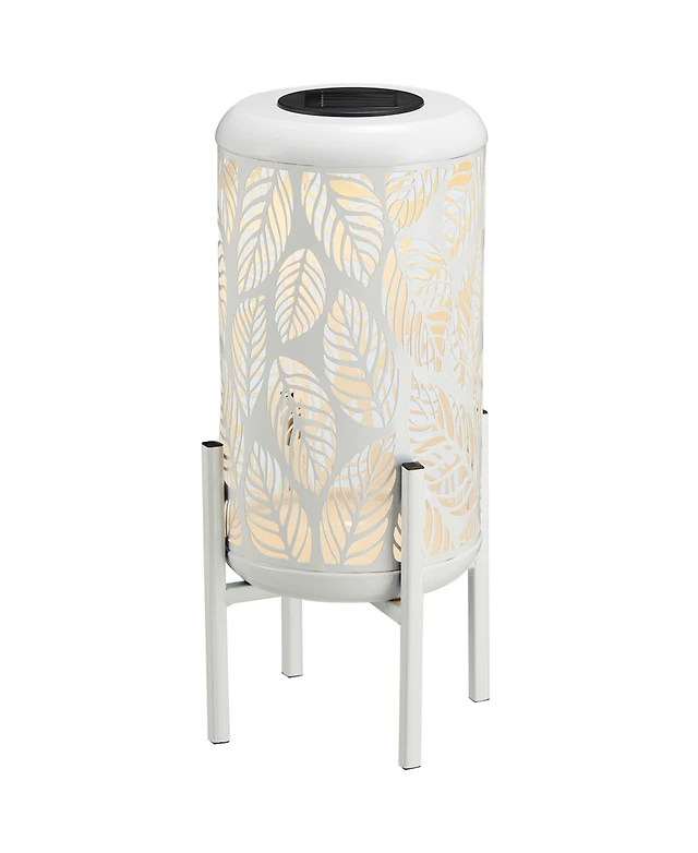 Glitzhome 14.25" H Metal Cutout Leaves Pattern Solar Powered Led Outdoor Lantern with Stand
