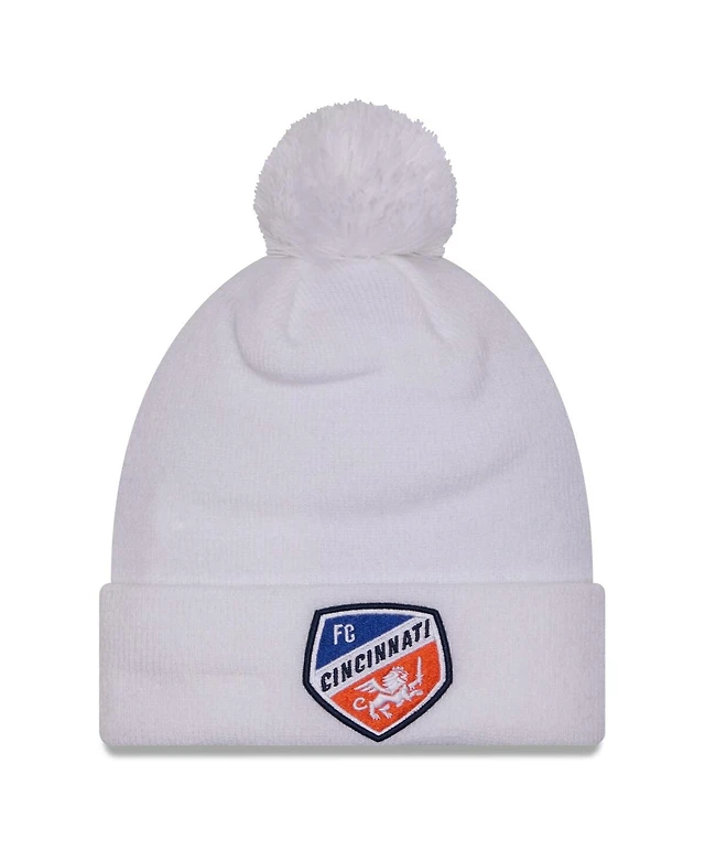 New Era Men's White Fc Cincinnati Jersey Hook Cuff With Pom Knit Hat