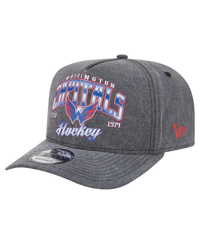 New Era Men's Charcoal Washington Capitals Throwback Washed A-Frame Pre-Curved 9FIFTY Snapback Hat