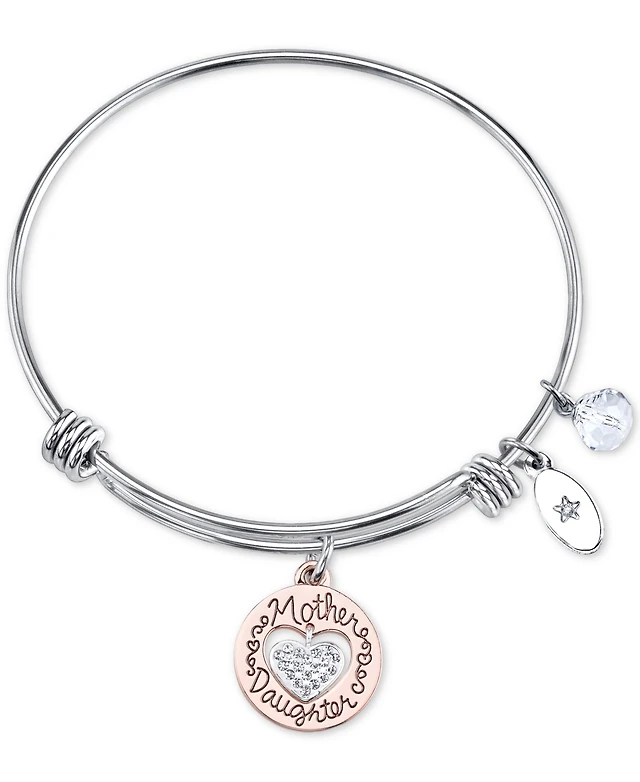 Disney Stainless Steel Heart Bead Charm 2 Stoppers Small and Medium Starter Bracelet, 7.5