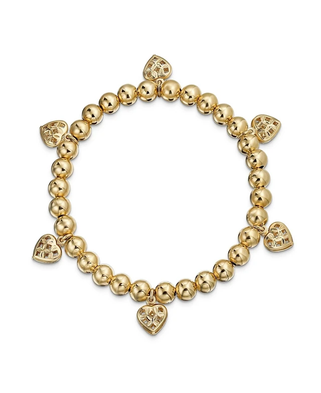 GiGiGirl 14k Yellow Gold Plated Beaded Heart Charm Station Kids Bracelet - Adjustable w/ Extension Chain