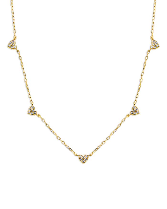 Pavé Five Heart Charm Necklace, 15"-17"