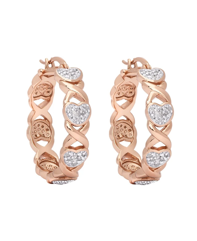 Cubic Zirconia Heart Earrings in Fine Rose Gold Plate or Fine Silver Plate