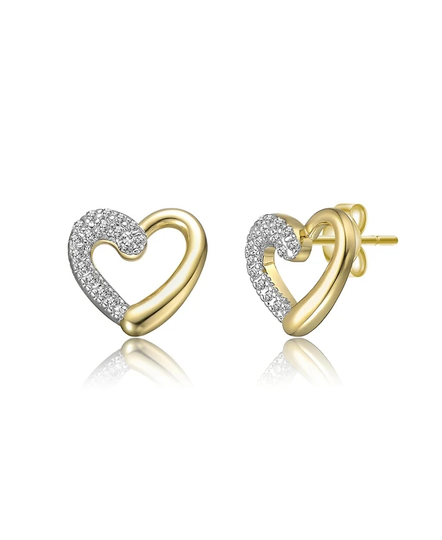 Cubic Zirconia Studded Polished Heart Stud Earrings in 14k Gold-Plated Sterling Silver