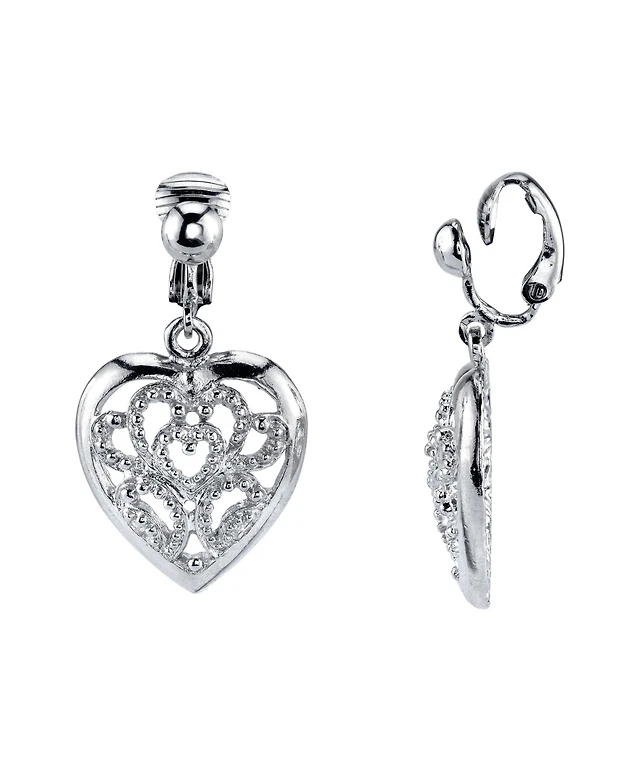 Betsey Johnson Rhodium Straight Heart Cd Hoop Earrings