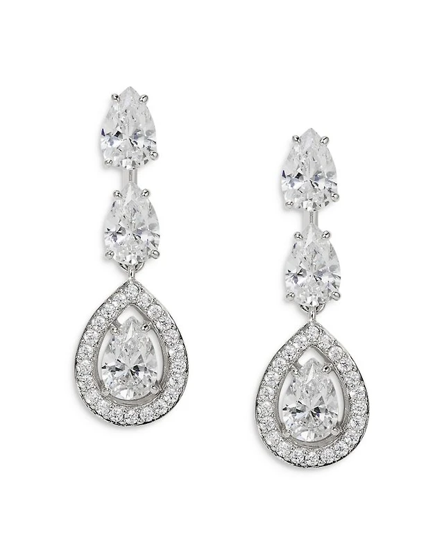 Suzy Levian Sterling Silver Cubic Zirconia Large Heart Cluster Earrings