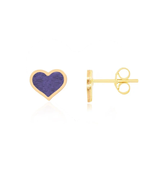 Heart Stone & 18K Yellow Gold Plated Stud Earrings, 0.5"L