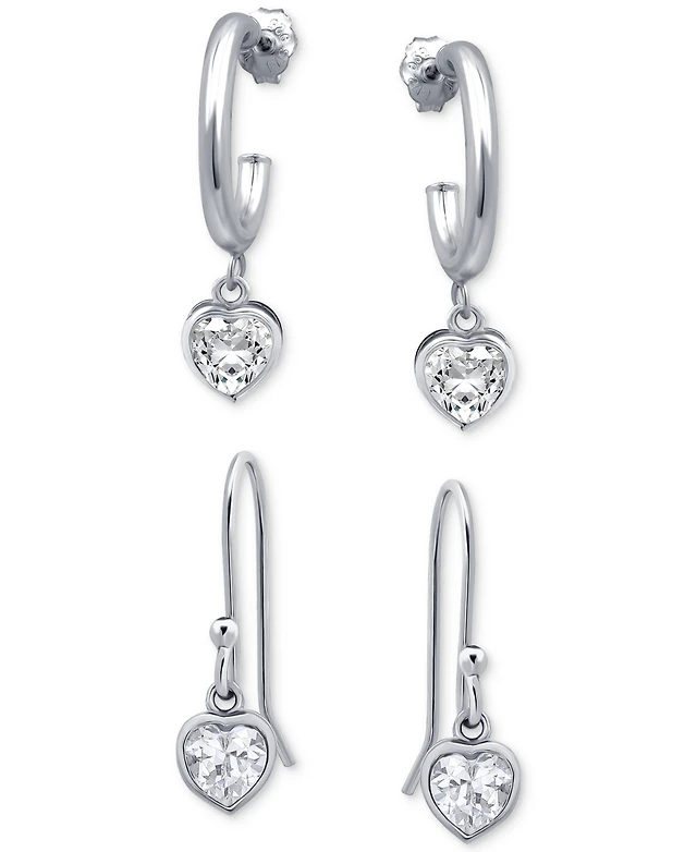 Giani Bernini Cubic Zirconia Heart Charm Hoop Earrings (1-1/20 ct. t.w.), Exclusively at Macy's