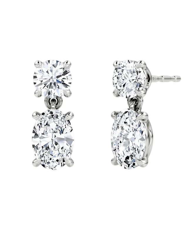 Signature Drop Earring in 14K White Gold, 1.5ctw Round Brilliant & Oval Lab Grown Diamonds