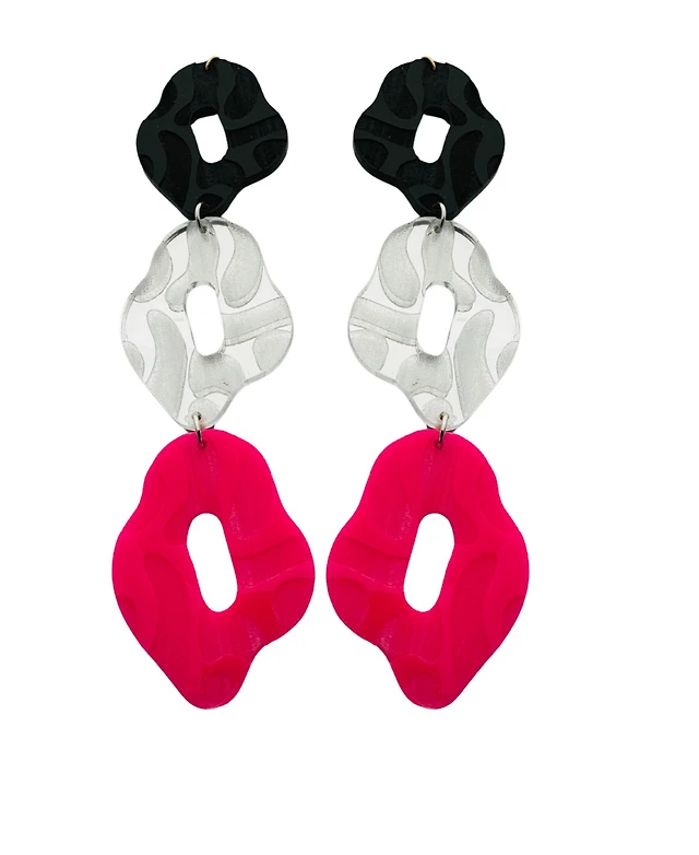 Gold Pink Acrylic Doorknocker Stud Earrings