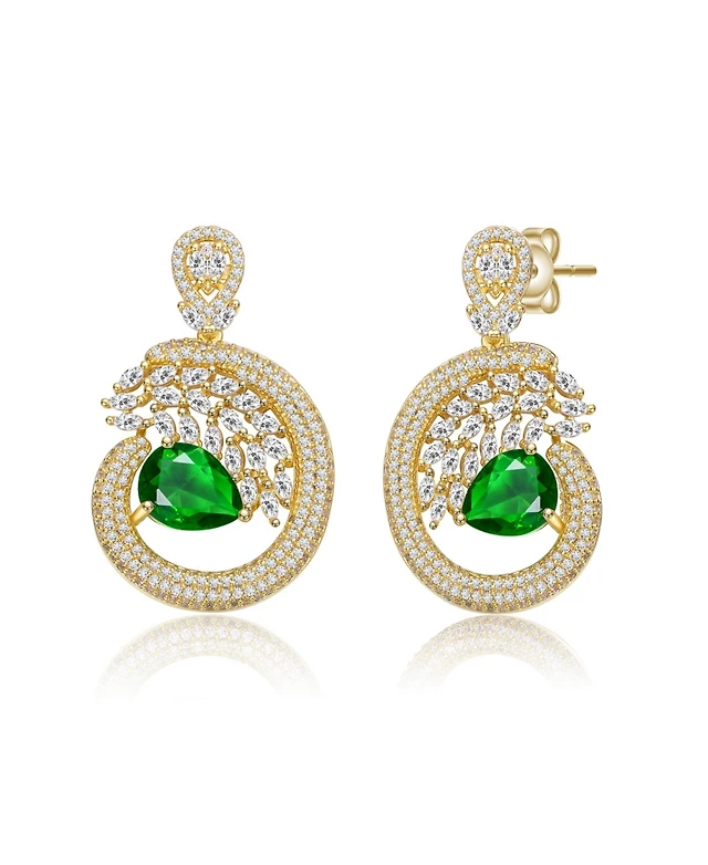 14K Gold Plated Cubic Zirconia with Hollow Circle Dangle Earrings