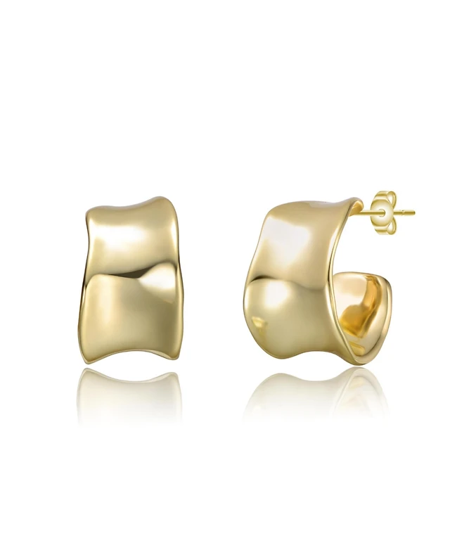 14k Yellow Gold Plated with Cubic Zirconia Oblong Oval Raindrop Hoop Earrings