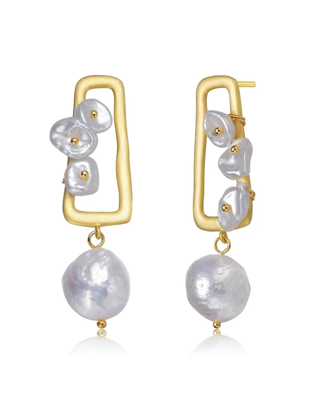 Sterling Silver 14k Yellow Gold Plated White Pearl Drop Huggie Hoop Earrings