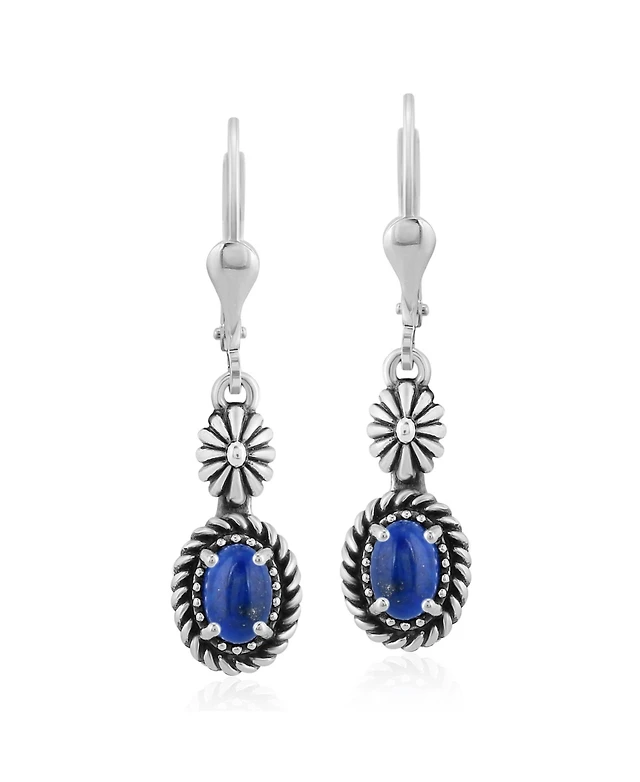 American West Jewelry Sterling Silver Lapis Fritz Casuse Oval Gemstone Naja Earrings
