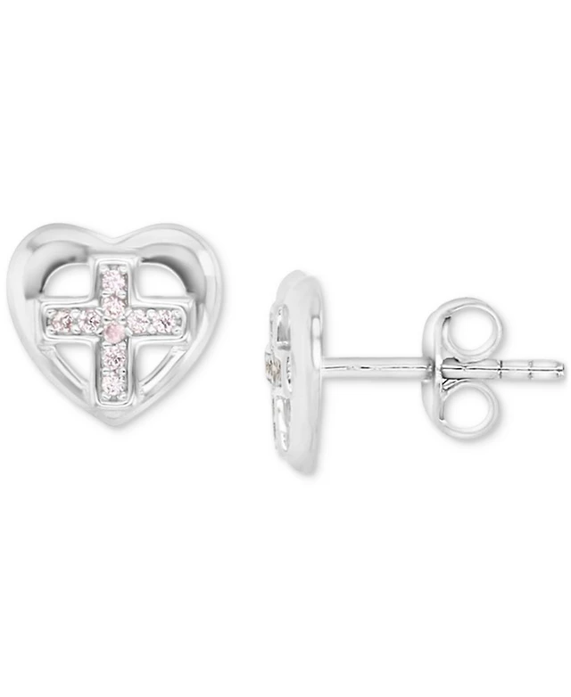 Cubic Zirconia Cross-in-Heart Openwork Stud Earrings
