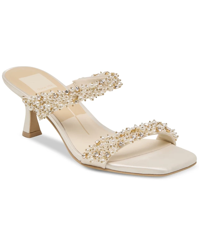 Dolce Vita Women's Nolah Pearl Beaded Double-Band Block-Heel Dress Sandals