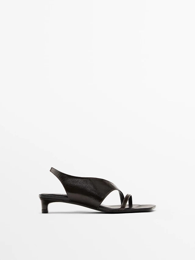 Kitten-heel leather sandal