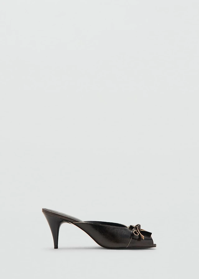 Leather high-heeled sandals with bow