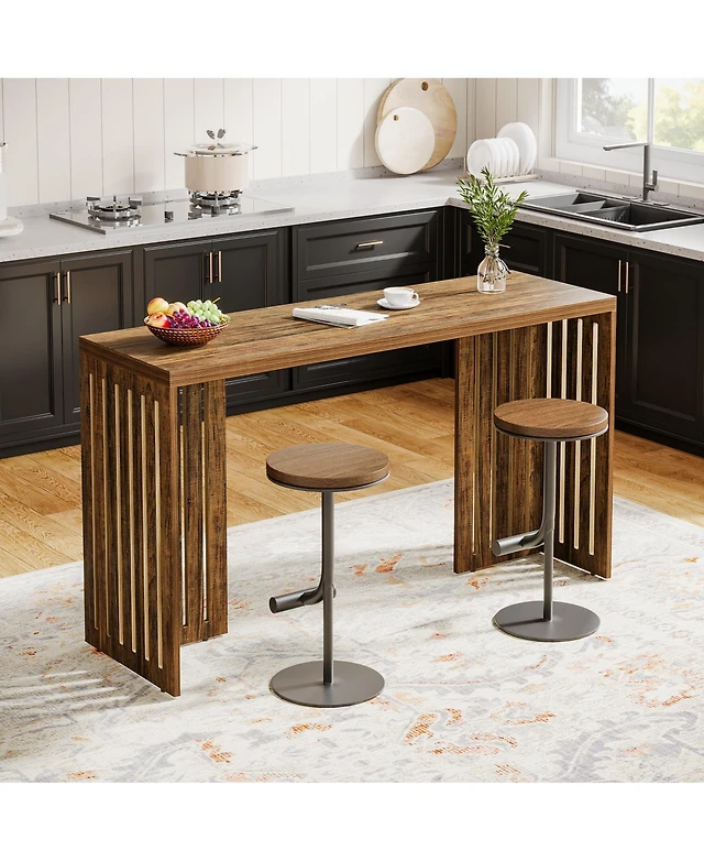 Tribesigns 59" Long Bar Table, Farmhouse Kitchen Counter Height Table with Sturdy Frame, Wooden Bar Height Pub Table for Dining Room, Living Room, Eas