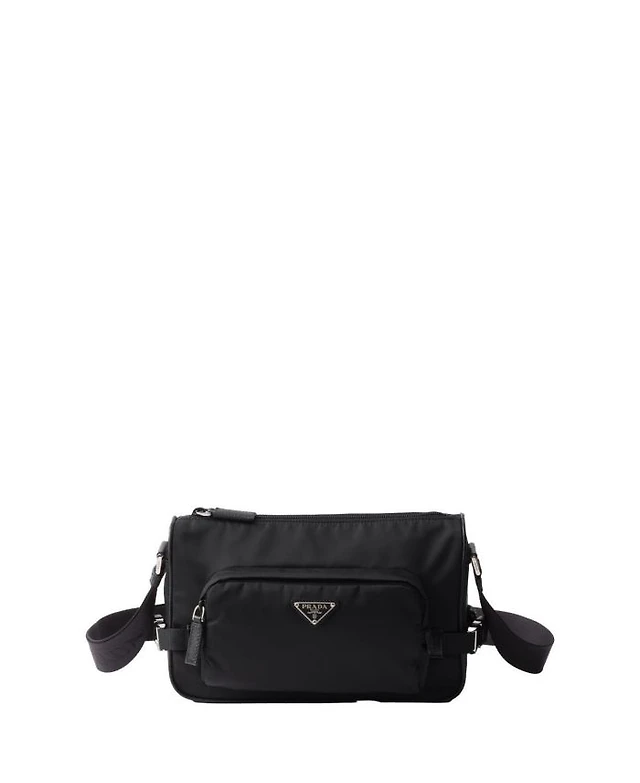 Re-Nylon and Leather Medium Top-Handle Bag with Padlock