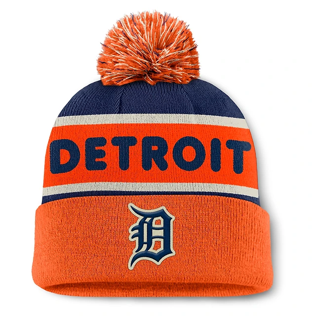 Men's Fanatics Navy Detroit Tigers Heritage Cuffed Knit Hat with Pom