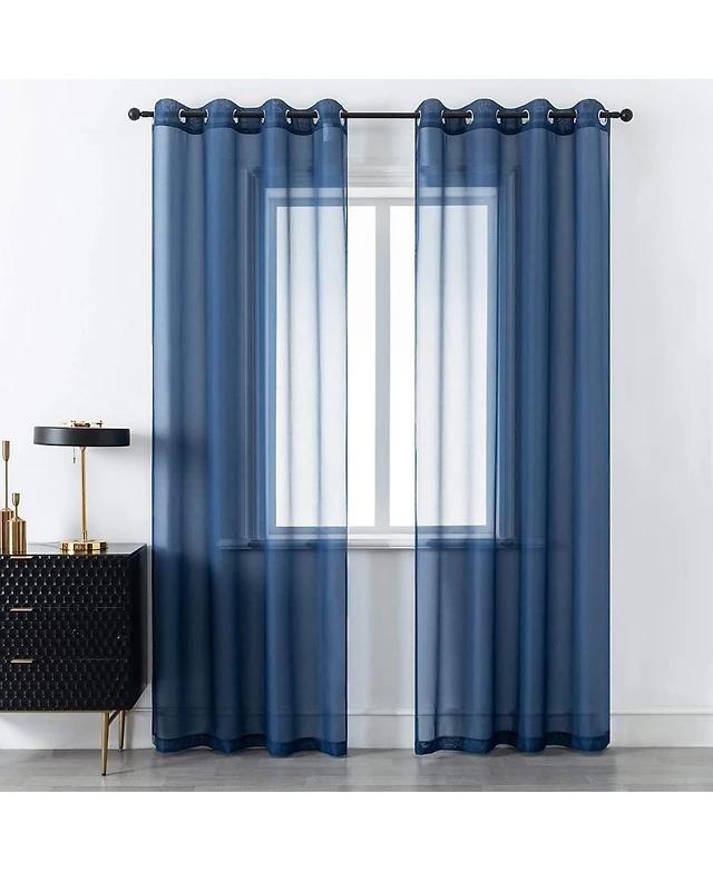 Kate Aurora Basic 2 Piece Navy Blue Lightweight Grommet Top Sheer Voile Window Curtain Panels - 84 in. Long