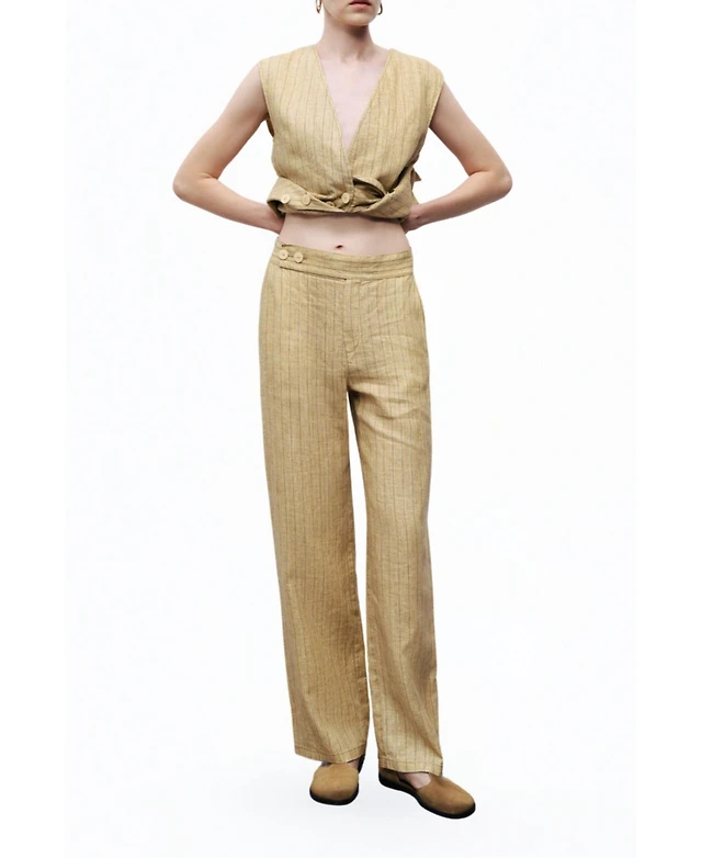 Nocturne Women's Linen Blend Striped High Waist Pants