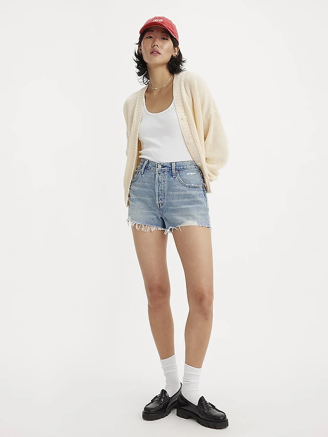 Super High Waisted Medium Wash Raw Hem Jean Shorts