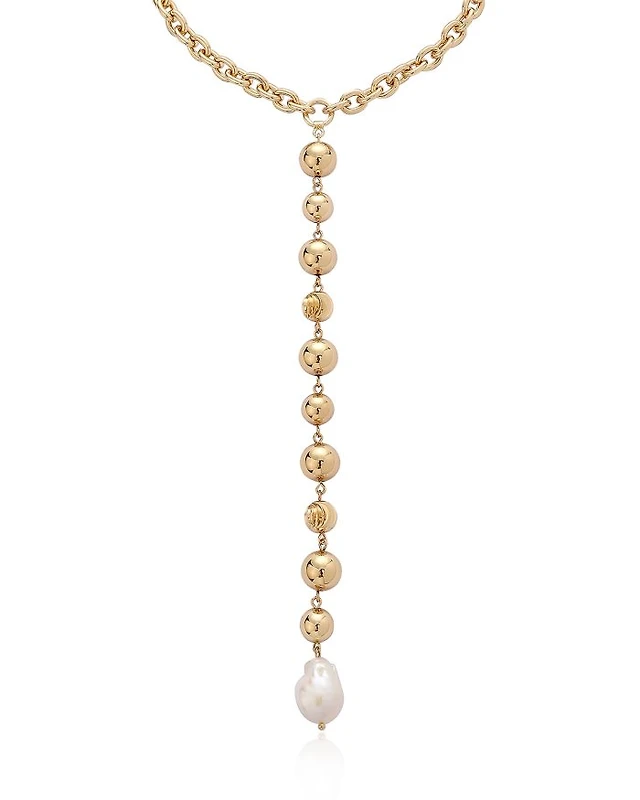 Adornia Gold Beaded Faux Cultivated Pearl Layered Lariat Necklace