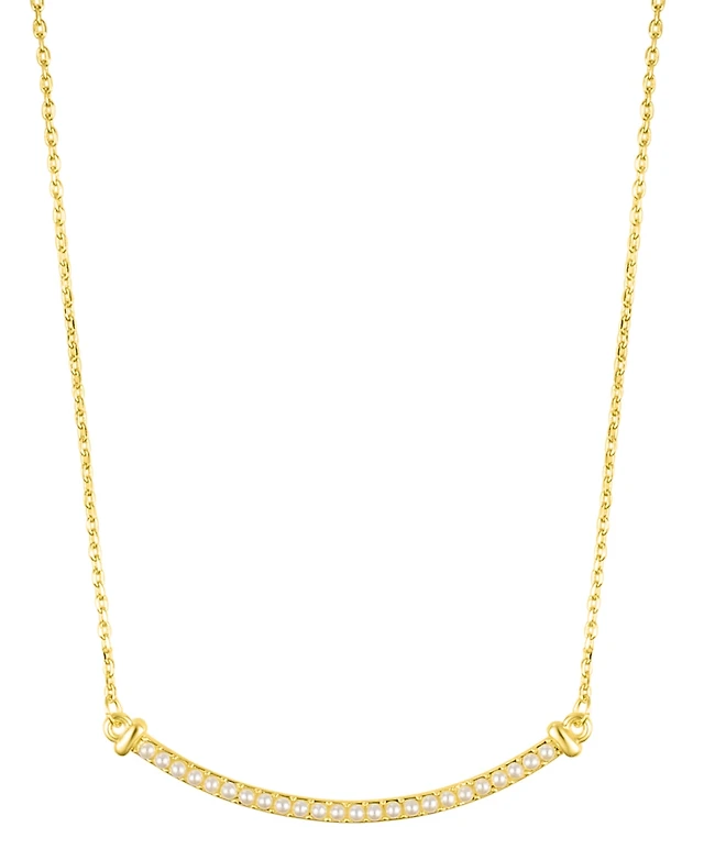 Genevive Sterling Silver 14K Gold Plated with Genuine Freshwater Pearl Curvy Pendant Necklace