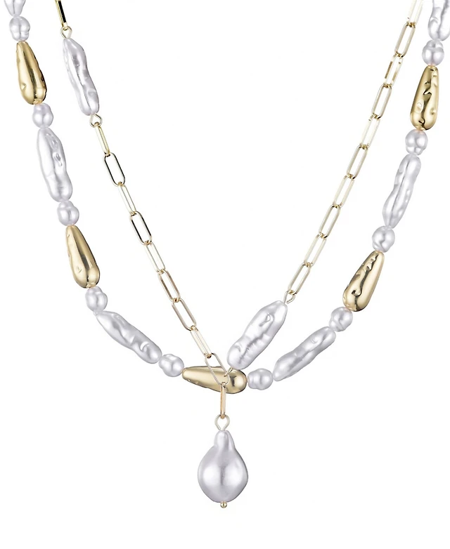 Emily in Paris Gold-Tone Imitation Pearl Layered Strand Necklace, 16" + 3" extender