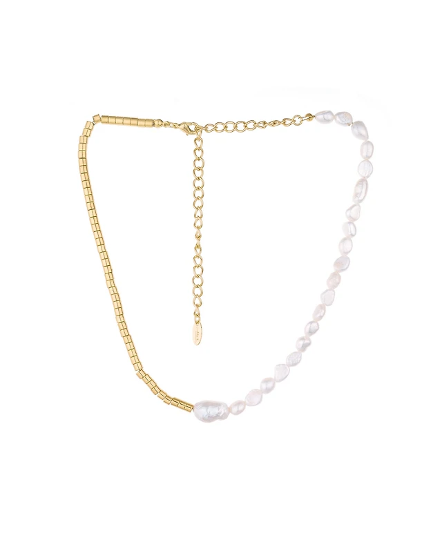 Joey Baby 18K Gold Plated Freshwater Pearls with Glass Gold Beads - Emili Necklace 17" For Women