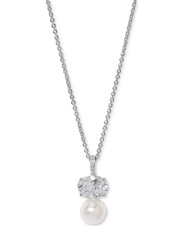 Cultured Freshwater Pearl (7 x 9mm) & Cubic Zirconia Pendant Necklace & Drop Earrings Set in Sterling Silver, Created for Macy's