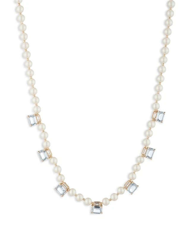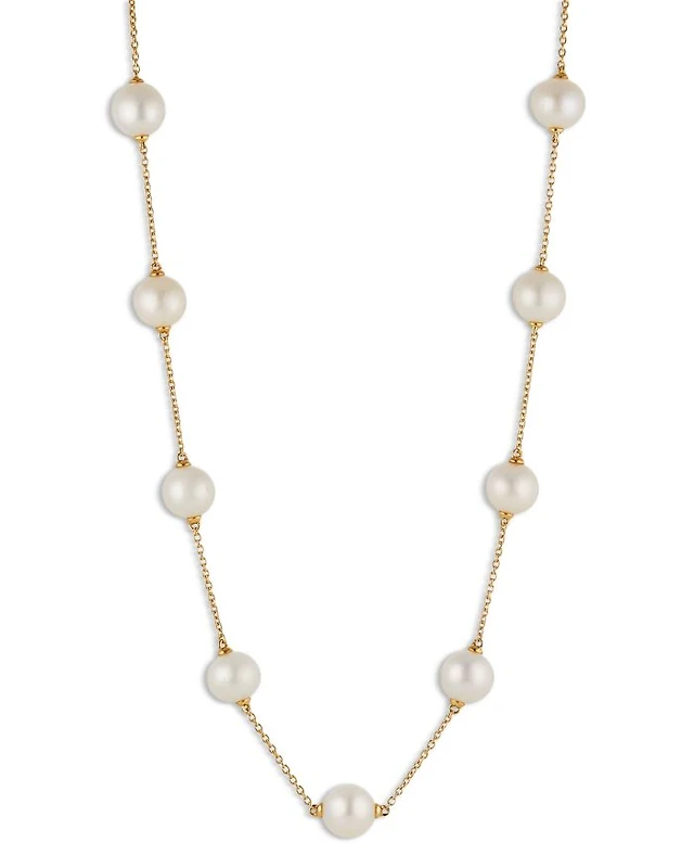 Honora Cultured Freshwater Pearl (5 & 8-1/2mm) & Diamond (1/5 ct. t.w.) Ribbon 17" Collar Necklace in 10k Gold