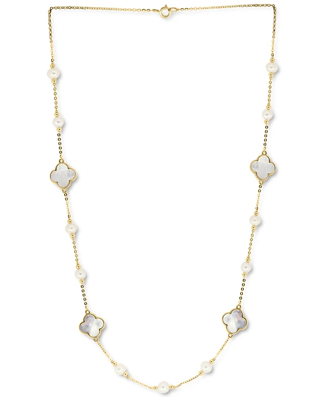 Effy Mother-of-Pearl & Freshwater Pearl (4-1/2mm) 18" Necklace in 14k Gold