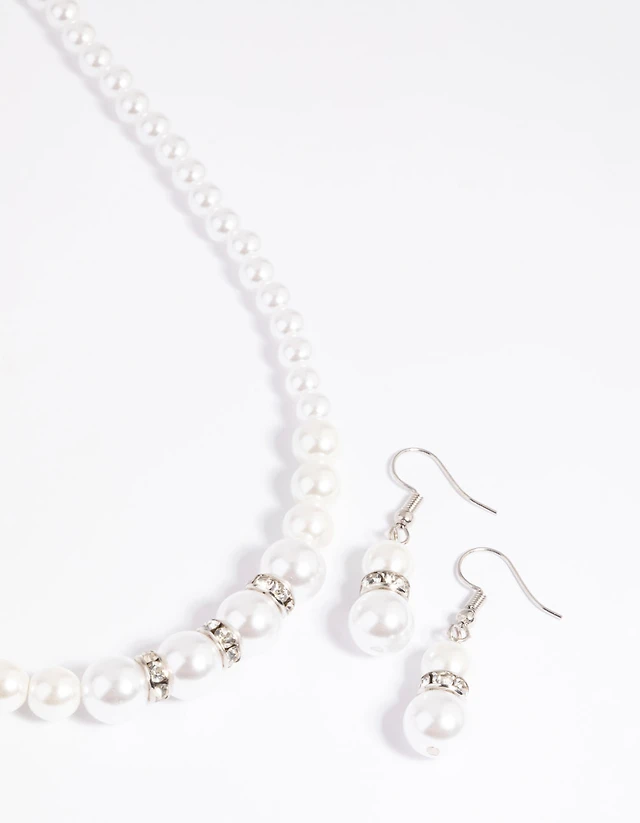 Silver Pearl Drop Necklace & Earring Set
