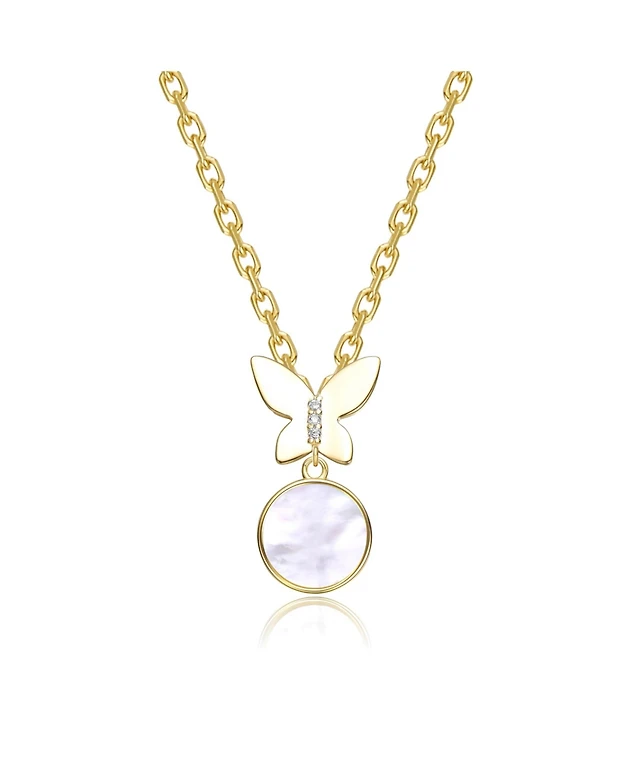 GiGiGirl 14K Gold Plated With Mother of Pearl & Elegant Butterfly Pendant Necklace