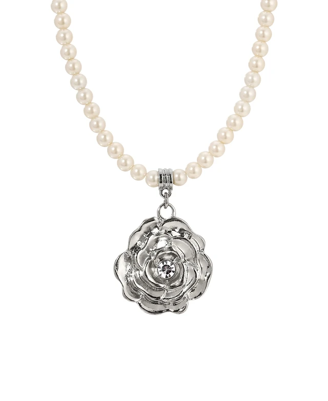 kate spade new york Imitation Pearl and Cubic Zirconia Flower Pendant Necklace