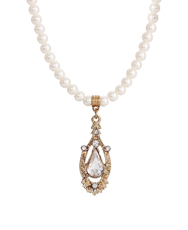 2028 Tone Filigree Drop with Pearl Drop Necklace
