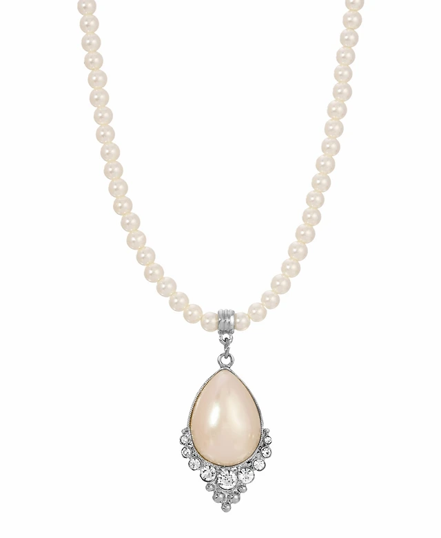 2028 Gold-Tone Imitation Pearl and Crystal Pendant Necklace