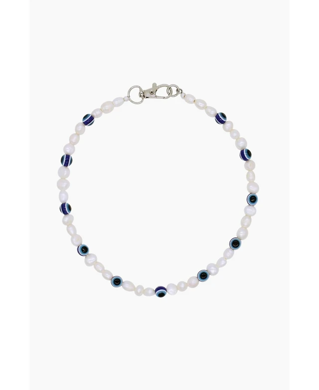 Natural Pearl Necklace With Eye Ceramic Beads 16″