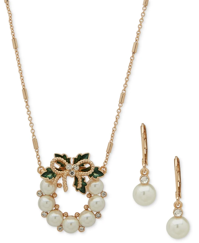 Anne Klein 2-Pc. Imitation Pearl and Enamel Wreath Pendant Necklace and Earrings Set
