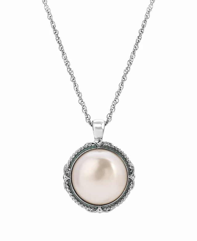 Macy's White Cultured Pearl and Cubic Zirconia Pendant Necklace
