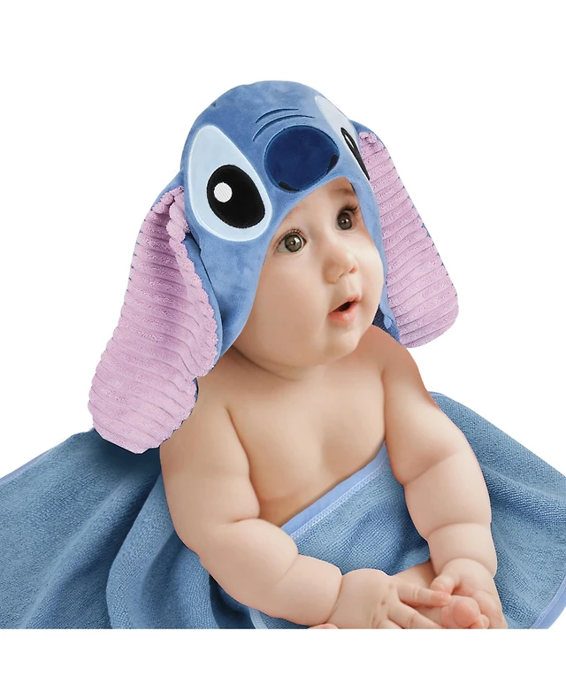 Lambs & Ivy Baby Disney Stitch Luxury Blue Cotton Terry Hooded Bath Towel
