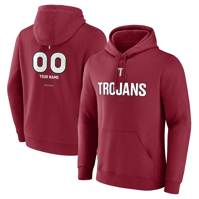 Men's Cardinal Troy University Trojans Playmaker Football Personalized Name & Number Pullover Hoodie