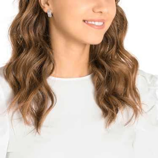 Matrix hoop earrings, Baguette cut, Ribbon, White, Rhodium plated by SWAROVSKI